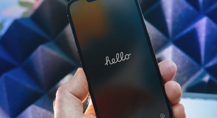 Tela Olá do iPhone 13.