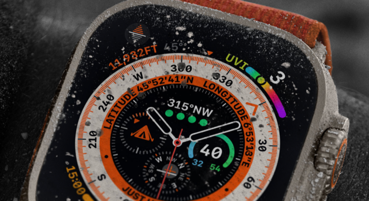 O Apple Watch Ultra é um wearable robusto com um novo tamanho de caixa de 49 mm (acima das opções de 41 mm e 45 mm disponíveis para a Série 8 padrão). Além disso, ele possui uma nova tela frontal plana de cristal de safira que, segundo a Apple, ajudará a proteger melhor o vidro.