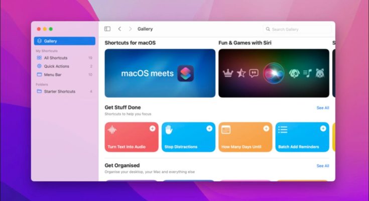 Muitos deles são acionados no item da barra de menus Atalhos , enquanto outros aparecem no menu Ações rápidas do botão direito do mouse . Você também pode acioná-los diretamente do aplicativo Atalhos, se desejar, onde pode editar atalhos existentes, adicionar mais da Galeria ou excluir fluxos de trabalho que não são mais necessários.