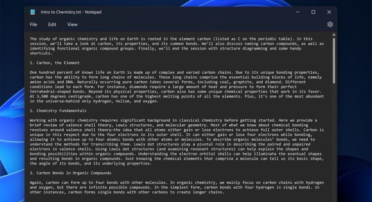 Antes do ano passado, o Bloco de Notas mudou muito pouco desde as primeiras versões do Windows. Sempre foi concebido como um editor de texto simples, com a Microsoft oferecendo o Word ( e anteriormente o WordPad ) como alternativas mais poderosas. A primeira atualização significativa em pelo menos uma década começou a ser lançada em fevereiro , com um novo design (correspondente ao Windows 11), cantos arredondados, tema escuro, desfazer em vários níveis, arrastar e soltar e outras mudanças. O bloco de notas ainda é estritamente para edição de texto simples, mas agora está muito melhor nisso.