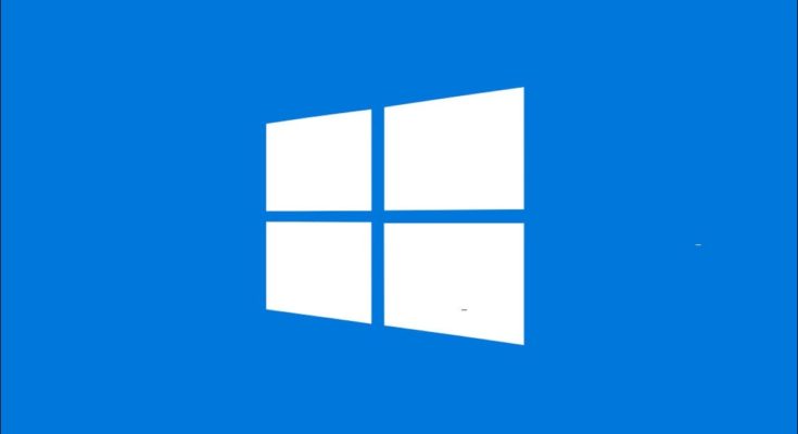 Logotipo branco do Windows 10 contra um fundo azul.