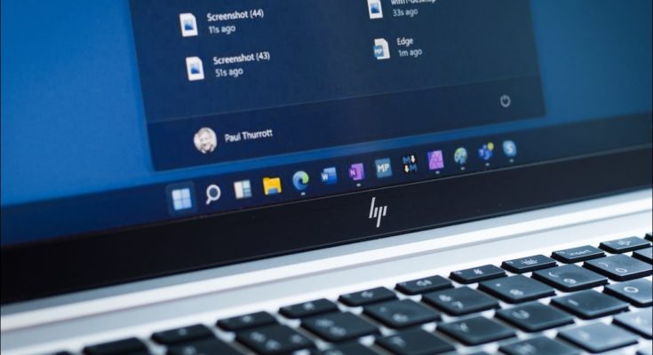 Barra de tarefas centralizada do Windows 11 em um laptop