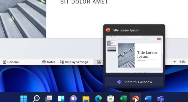 A Microsoft anunciou a versão mais recente do Windows 11 Insider Preview. Isso torna o uso do Microsoft Teams com Windows 11 uma experiência ainda mais agradável, pois você pode apresentar rapidamente uma janela no Teams diretamente da barra de tarefas.