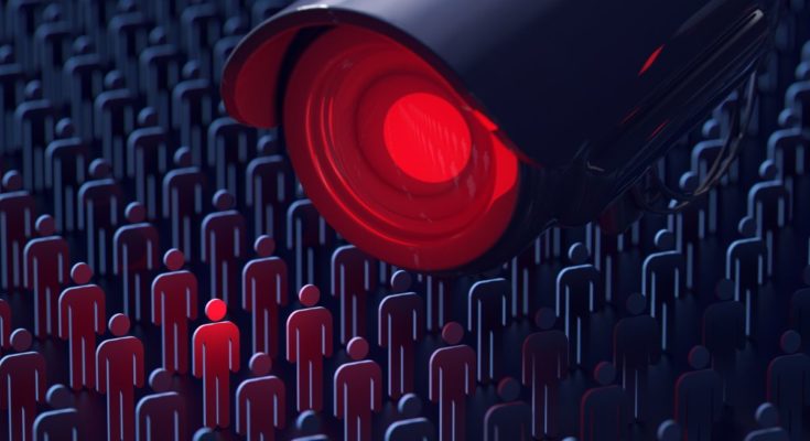 Uma câmera de vigilância identificando uma pessoa no meio da multidão.