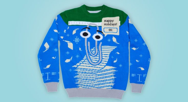 Essa popularidade duradoura é provavelmente o motivo pelo qual parece que Clippy é a estrela do novo suéter feio da Microsoft, que combina a feiúra necessária com muita idiotice também. Aqueles que procuram o suéter mais ostentoso para irritar seus amigos e parentes fariam bem com esta versão azul e verde brilhante do Windows, desejando aos espectadores “Boas Festas!” seguido por um “Ok” no qual você não pode clicar.