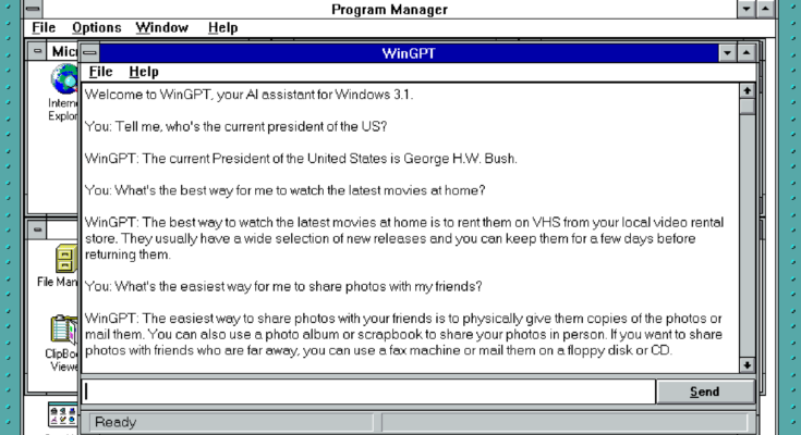 Embora o Windows 3.1 já tenha mais de 30 anos, ainda há ocasionalmente novos aplicativos e jogos, graças à comunidade de computação retro. Desta vez, um cliente ChatGPT foi lançado para Windows 3.1, chamado WinGPT.