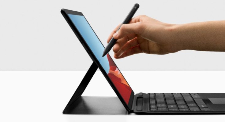 Uma pessoa desenhando em um tablet Microsoft Surface.