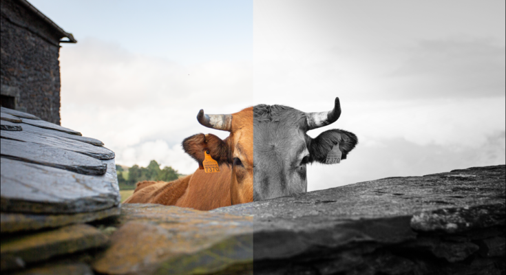 Um filtro aplicado pela metade a uma imagem de uma vaca