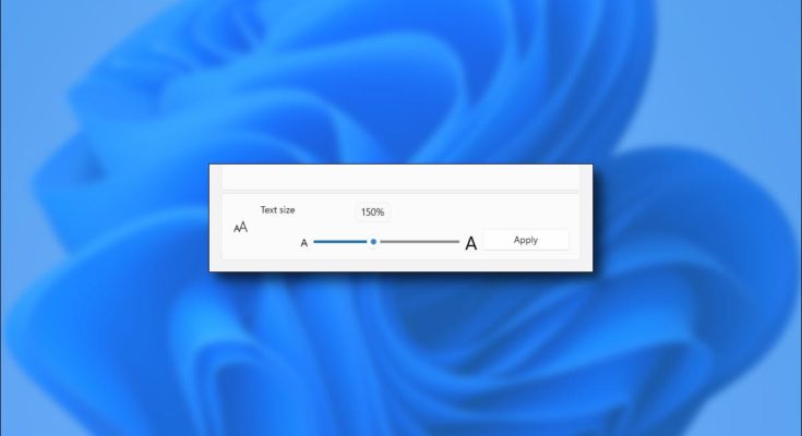 O controle deslizante de tamanho de texto do Windows 11 em um fundo azul