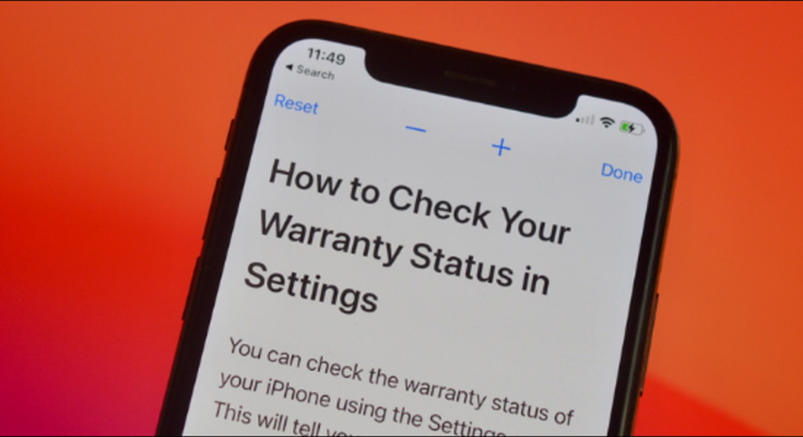 Agora você verá uma nova barra de ferramentas na parte superior da tela. Toque no botão “+” para aumentar o tamanho do texto. O botão “-” reduzirá o tamanho do texto. Você pode selecionar o botão “Redefinir” para voltar ao tamanho de texto padrão. Assim que terminar de personalizar, toque no botão “Concluído”.