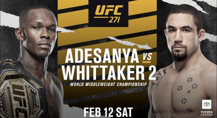 O UFC 271 marca o segundo confronto entre Adesanya e Whittaker, que se enfrentaram pela primeira vez no UFC 243 em outubro de 2019, quando Adesanya derrotou Whittaker pelo título dos médios, que ele detém atualmente. O card principal também contará com uma luta nos pesos pesados entre Derrick Lewis e Tai Tuivasa, uma luta nos médios entre Jared Cannonier e Derek Brunson, uma luta nos galos entre Kyler Phillips e Marcelo Rojo e uma luta nos leves entre Bobby Green e Nasrat Haqparast.