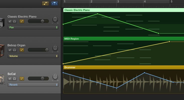 A capacidade de automatizar faixas é um dos recursos mais poderosos do GarageBand. A automação permite que você ajuste o volume, panorâmica, eco e outros efeitos em diferentes pontos da música. A maneira como o GarageBand implementa esse recurso é na verdade muito direta e intuitiva e fácil de usar.