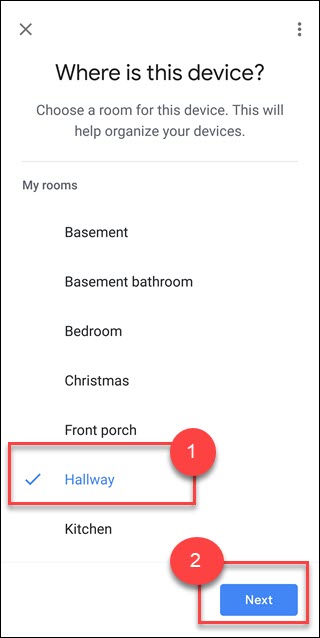Tap the Room with which you want to associate the device and then tap “Next.”
