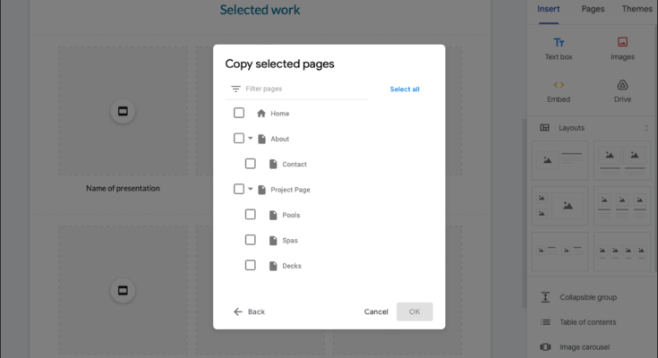 Antigamente, os usuários só podiam copiar um site inteiro para um novo, o que nem sempre era conveniente. Mas, com uma atualização do aplicativo, o Google permite que você escolha quais páginas deseja copiar.