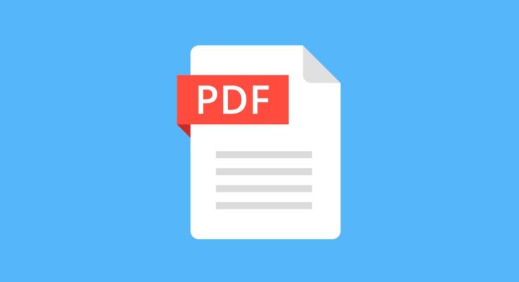 Ícone de arquivo PDF em um fundo azul.