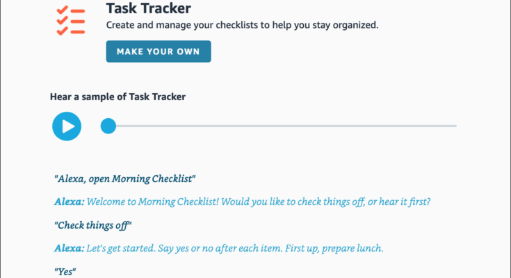 Quando você está saindo para o escritório, escola ou uma viagem, você gosta daquela última verificação para ter certeza de que tem tudo? Com o blueprint do Task Tracker, basta pedir a Alexa para percorrer sua lista .