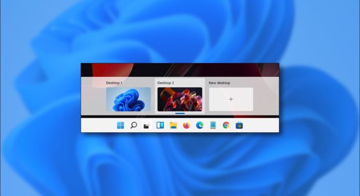 Para começar, primeiro você precisa mudar para a área de trabalho virtual que deseja personalizar. No Windows 11, clique no botão Exibição de tarefas na barra de tarefas (parece dois quadrados sobrepostos).
