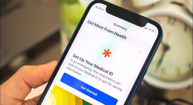 Você pode acessar sua ID médica pressionando e segurando os botões liga / desliga e aumentar ou diminuir o volume até que o controle deslizante “ID médica” apareça. Você também pode acessá-lo por meio do botão “Emergência” na tela de senha ou segurando o botão lateral (não a coroa digital) em um Apple Watch.