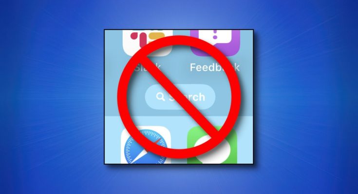 Um botão de pesquisa na tela inicial do iPhone riscado em um fundo azul.