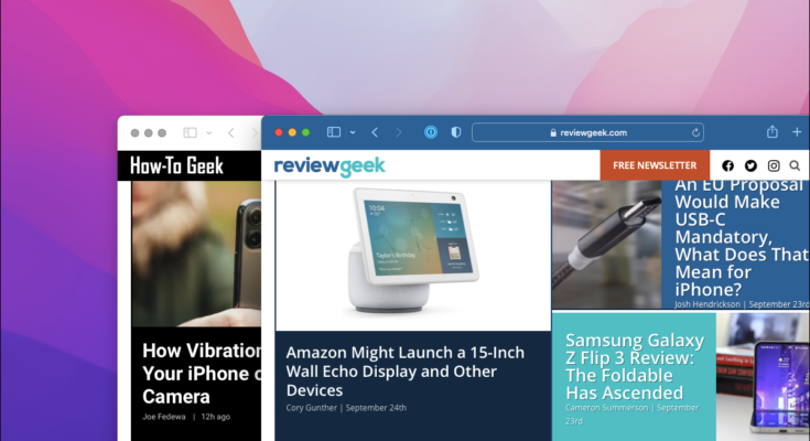 As mudanças na interface introduzidas com o Safari 15 fazem com que a barra de guias corresponda à cor do cabeçalho do site que você está navegando. A Apple chama isso de tingimento de site, que você pode desativar se o distrair durante a navegação ou alternar entre as guias.