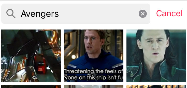 Depois de selecioná-lo, uma pequena seção aparecerá na parte inferior, exibindo um punhado de GIFs animados. A partir daí, você pode percorrer a lista infinita de GIFs aleatórios ou tocar na caixa de pesquisa (onde diz “Encontrar imagens”) e digitar uma palavra-chave relacionada ao tipo de GIF que deseja.