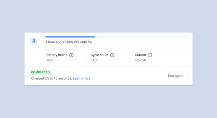 Você verá a opção “Executar teste de descarga” ou “Executar teste de carga”, dependendo se seu Chromebook está conectado. Esses testes medem a taxa na qual seu dispositivo carrega ou descarrega.