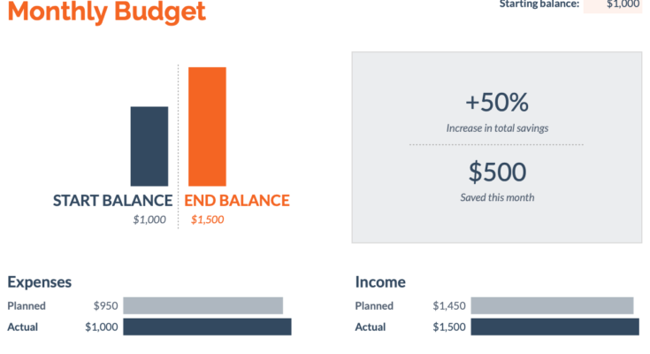 Você também pode aproveitar as vantagens dos recursos Planejado e Real do modelo para ver quão bem você estima seu orçamento mensal.
