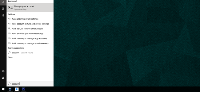 Se sua máquina Windows já estiver configurada, você pode adicionar uma nova conta com um novo endereço de e-mail para usar em vez de sua conta da Microsoft. Clique no botão Iniciar, digite “conta” e clique no resultado da pesquisa “Gerenciar sua conta”.
