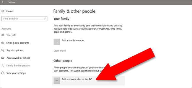 Em seguida, clique em “adicionar outra pessoa a este PC”.