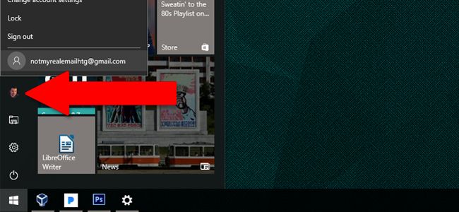 Clique no botão Iniciar novamente. Clique no ícone do seu perfil de usuário e, em seguida, clique no novo usuário que acabou de criar para fazer login com o e-mail alternativo pela primeira vez.