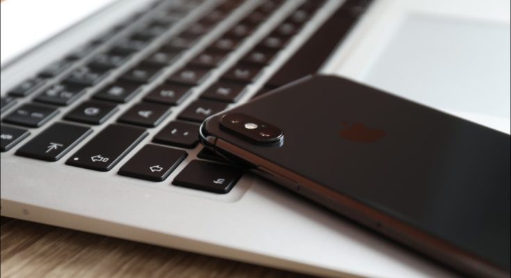 iPhone virado para baixo em um MacBook