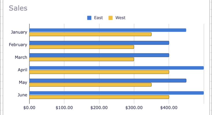 Se você tiver conjuntos de dados que deseja comparar ou mostrar uma tendência ao longo do tempo, crie um gráfico de barras. No Planilhas Google, você pode fazer um gráfico de barras e personalizá-lo da maneira que desejar.