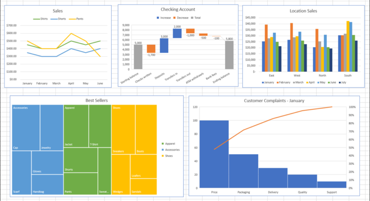 O Excel oferece muitos tipos de gráficos, desde gráficos de funil a gráficos de barras e gráficos em cascata . Você pode revisar os gráficos recomendados para sua seleção de dados ou escolher um tipo específico. E depois de criar o gráfico, você pode personalizá-lo com todos os tipos de opções.