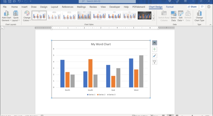 Ao criar um gráfico diretamente no Microsoft Word, você pode economizar um pouco de tempo. Isso é especialmente útil se você estiver usando uma pequena quantidade de dados que é benéfica para o seu documento do Word.