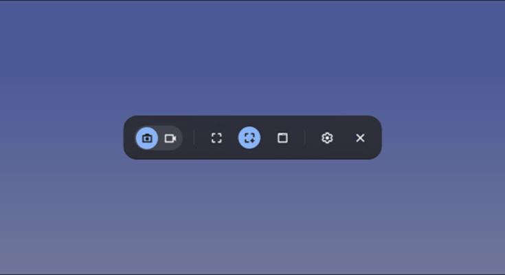 Para fazer uma captura de tela em um Chromebook, certifique-se de que a ferramenta de captura de tela que se parece com um ícone de câmera está destacada.