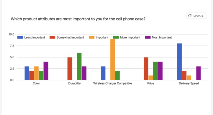 Você deverá ver os gráficos vinculados ao seu Formulário Google. Se uma atualização estiver disponível, você pode clicar em “Atualizar” ao lado do formulário. Como alternativa, clique em “Atualizar tudo” na parte inferior para cuidar de todos os gráficos de uma só vez.