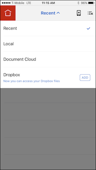 You can also open PDFs from the Adobe cloud or you can add your Dropbox account to open and save PDFs located there.