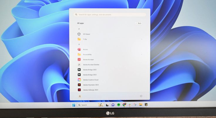 Alguns ícones de aplicativos visíveis no menu Iniciar do Windows 11.