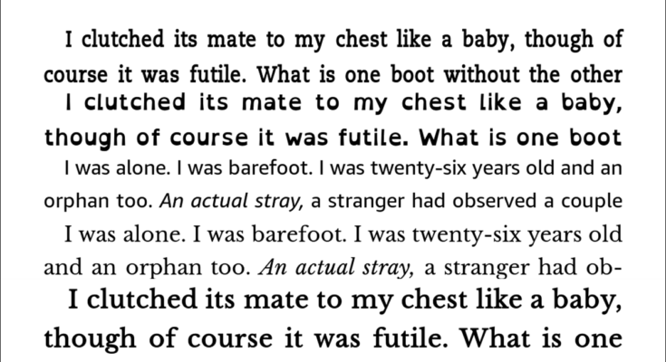 - A família de fontes controla a própria fonte. Você pode escolher entre Amazon Ember, Baskerville, Bookerly, Caecilia, Caecilia Condensed, Futura, Helvetica, OpenDyslexic e Palatino. Você também pode adicionar suas próprias fontes personalizadas .