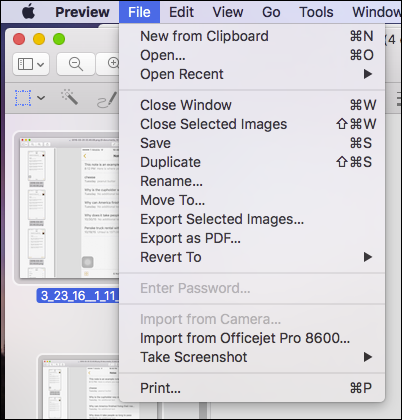 Todas as suas imagens devem abrir na barra lateral esquerda do Preview.