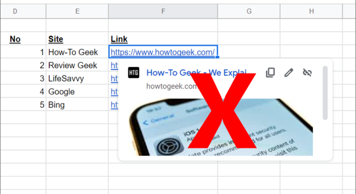 E isso é tudo. Você não verá mais as visualizações de links grandes em suas planilhas do Google Sheets.