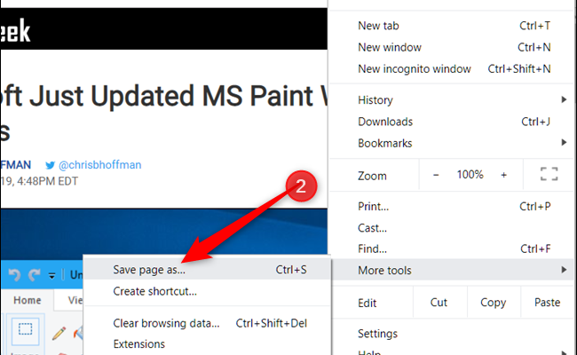 Clique no botão Menu, em Mais ferramentas e, por fim, clique em Salvar página como