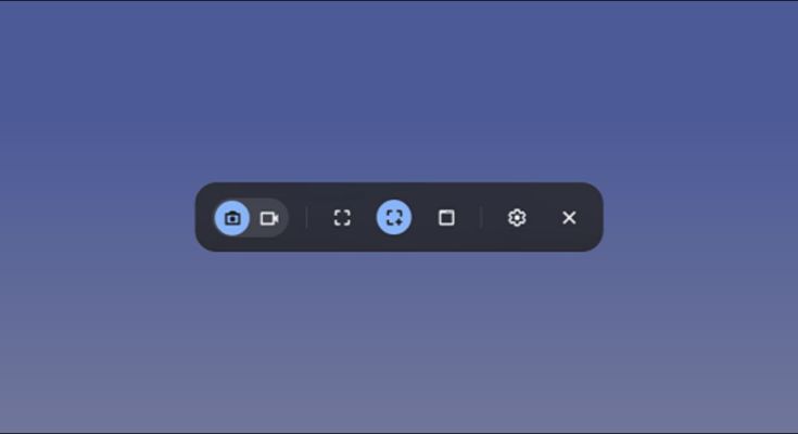A barra de ferramentas Captura de tela aparecerá na parte inferior da tela. Certifique-se de que o ícone de vídeo esteja selecionado para gravação de tela. O ícone da câmera só fará capturas de tela no seu Chromebook.