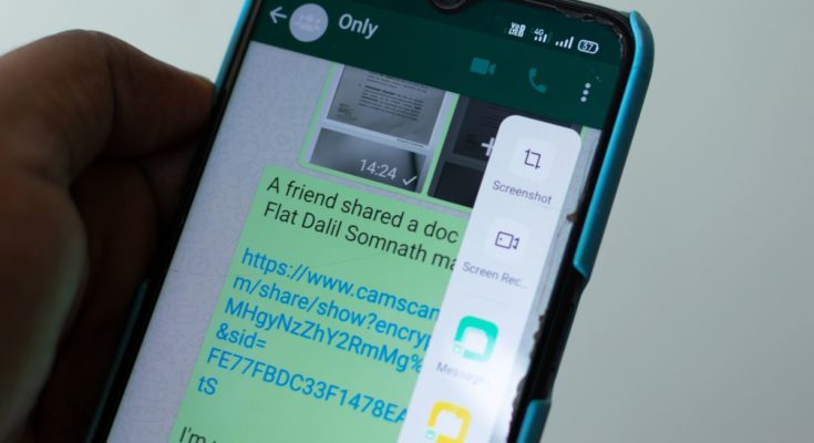Close de um smartphone com uma mensagem contendo um link na tela.