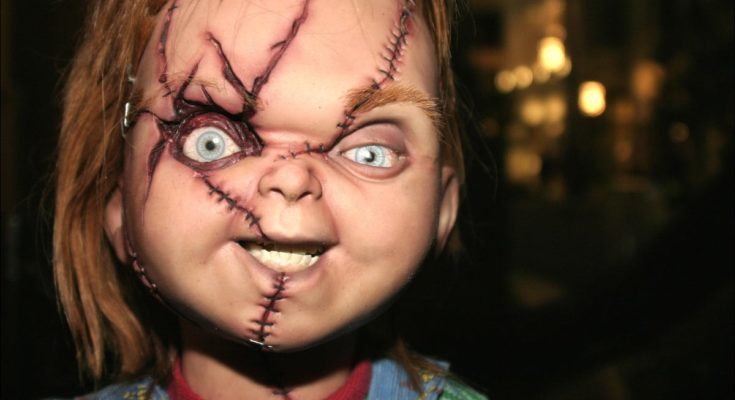 Close do rosto do personagem de Chucky dos filmes "Childs Play"