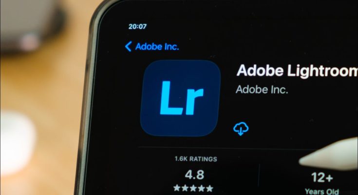 Aplicativo Adobe Lightroom mostrado em um tablet