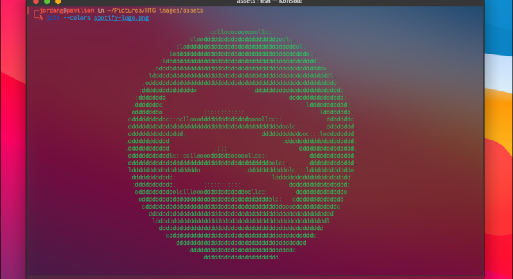 Logo Spotify gerado em caracteres ASCII em um terminal Linux.
