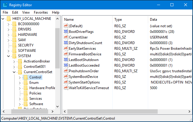 HKEY_LOCAL_MACHINE \ SYSTEM \ CurrentControlSet \ Control
