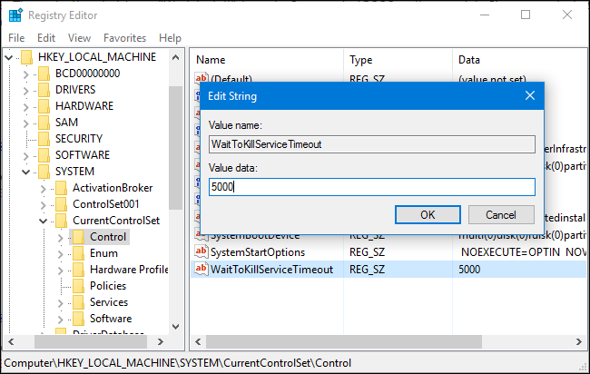 To undo this change, return here and double-click the WaitToKillServiceTimeout option. Set it to “5000”, the default setting.