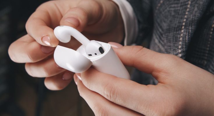 Pessoa tirando AirPods do estojo